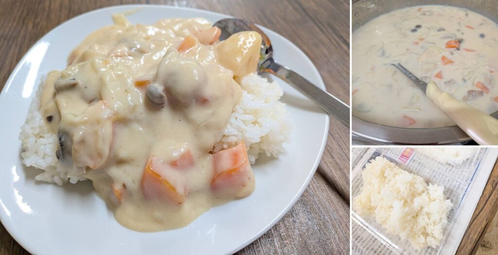 栄村商店よりご寄付頂きました凹み缶、ホワイトソース缶を使わせて頂きました。
