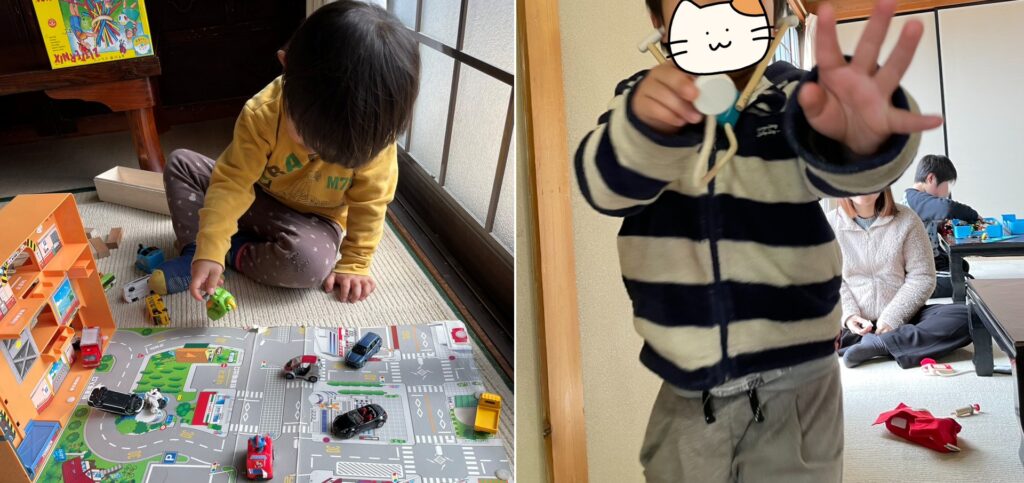 小さいお友だちは、まずは好きなおもちゃを見つけて自分の好きな遊びに夢中です!
