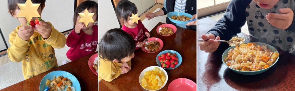 こども達はアツアツの出来立てカレーを大盛りにして大喜びでした。
