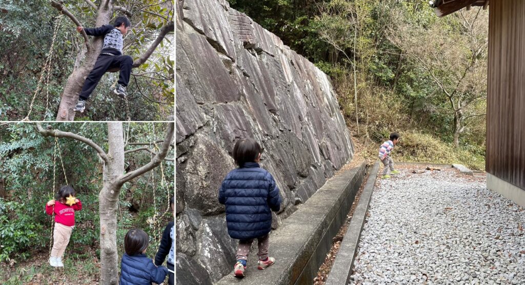 境内やお寺の裏山では元気いっぱいに走り回り、今を思いっきり楽しみきっているこども達の様子に、大人もこの時しか味わうことができないかもしれないこども達との時間を堪能しました。
