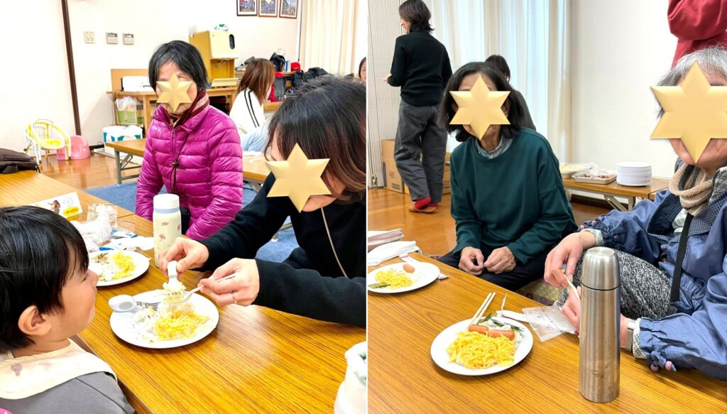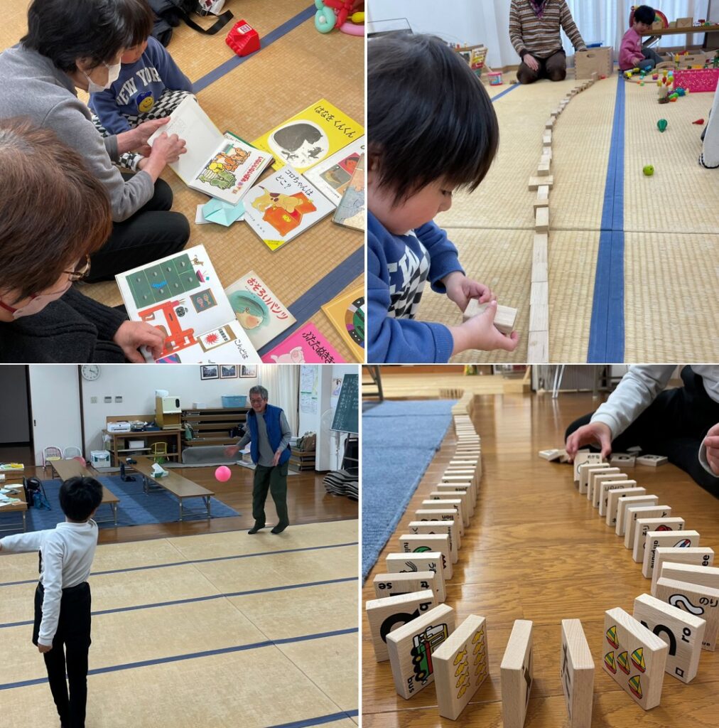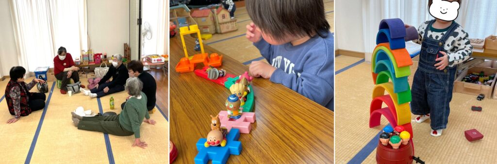工作したり絵を描いたり、お母さん同士の交流があったり、おばあちゃんも一緒に楽しんでいたり。