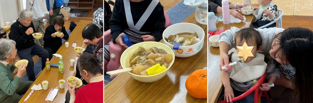 今日は先週のような寒さではなくて暖かでしたが、それでも寒かったのであったかい食器を持った途端のみんなの優しい表情が印象的でした。