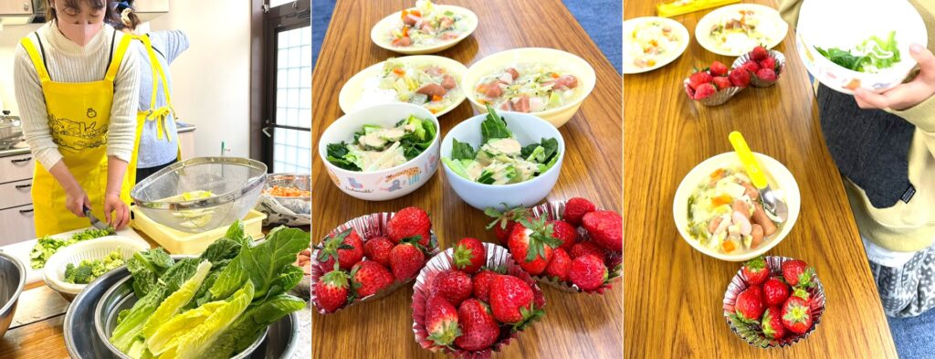 シチューやサラダの具材は、JA香川共済連さまよりご支援をいただいた野菜をフル活用しました!