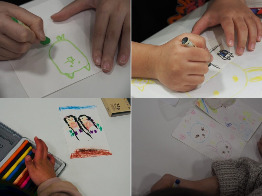 水沼さんが参加してくれた女の子に「この絵は誰に渡したい?」と聞くと、すぐに「ママ!」と答え、隣のお母さんと一緒に笑顔になる素敵なひとときもありました。