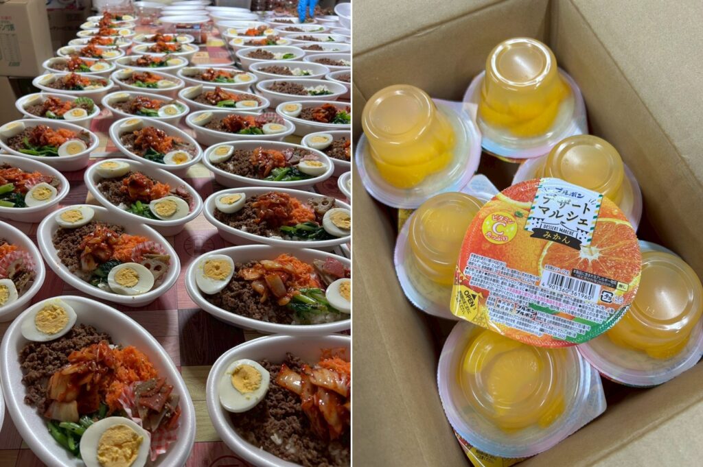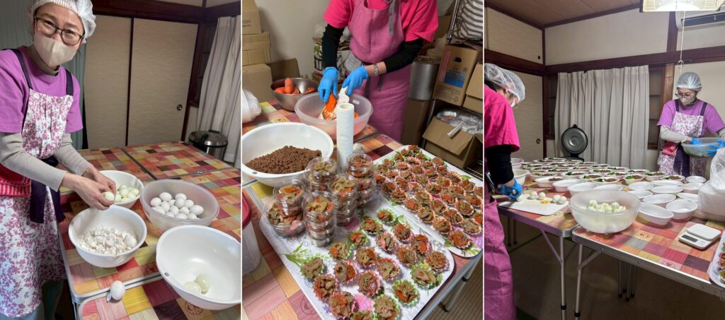 ご提供は、カレーライス(30食)、ぜんざい(30食)、オムライス(150食)です。