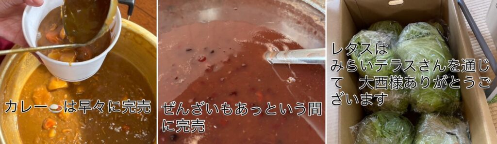 カレー・ぜんざいはあっという間に無くなりました。
