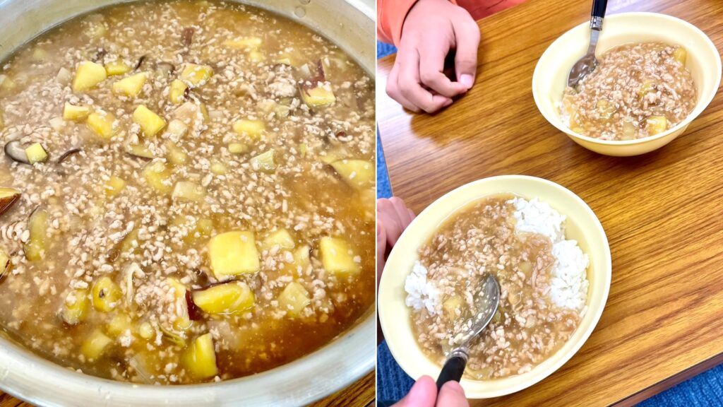 冬瓜と鶏肉のコンビのカレーはとっても絶品で、こども達はモリモリ食べました!!