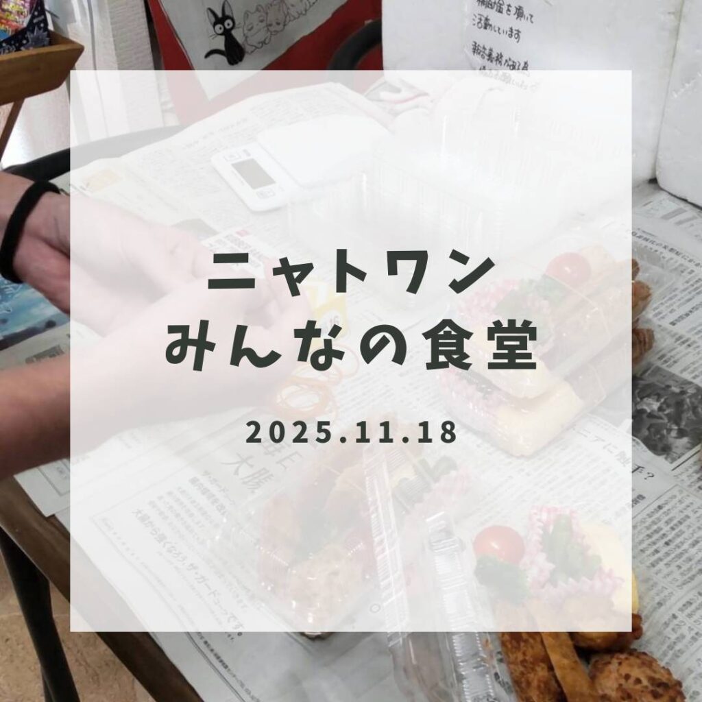 ニャトワンみんなの食堂が11月に開催した、こども食堂など活動の様子を紹介するヨ