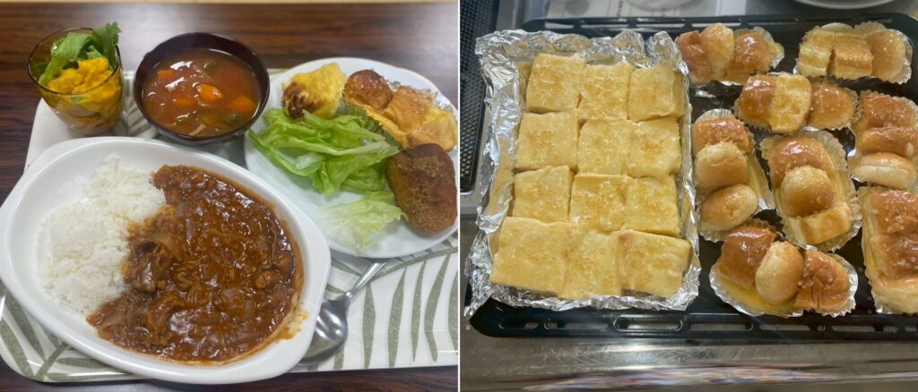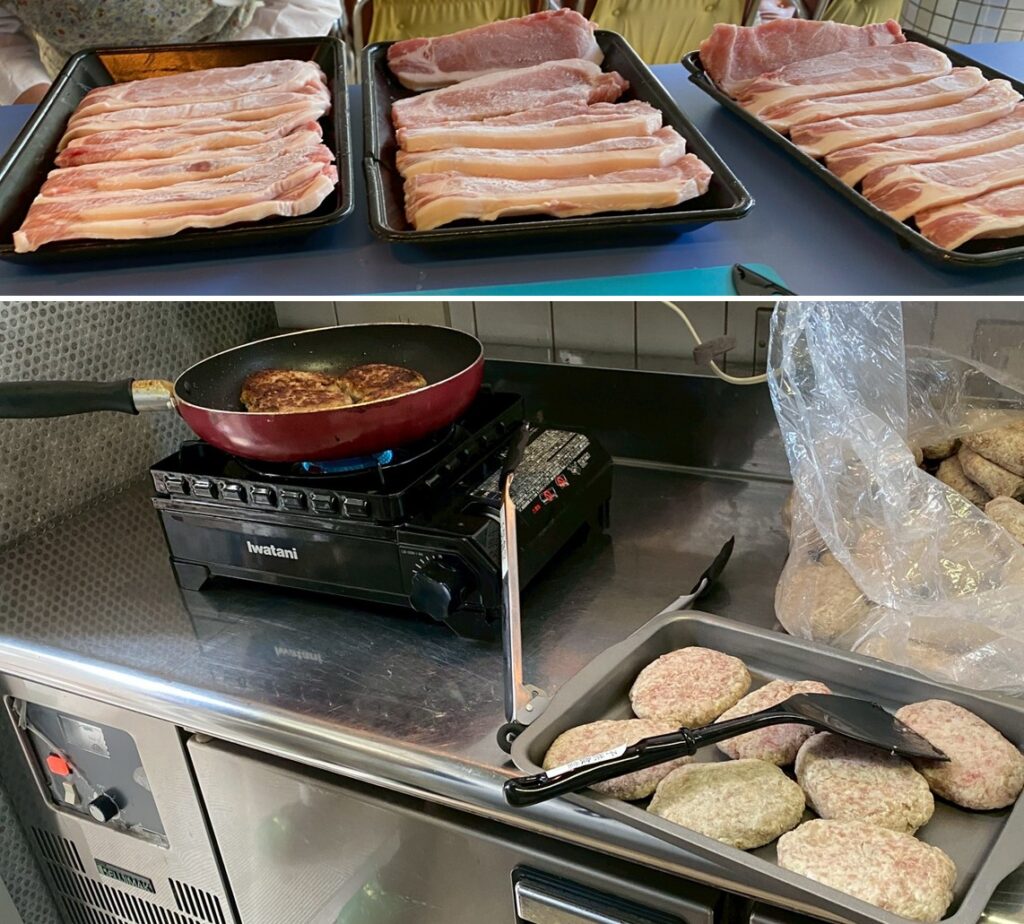 冷凍とんかつ(JA共済様)と冷凍ハンバーグ(原食肉店様)の提供があり、食材費がかなり助かりました。