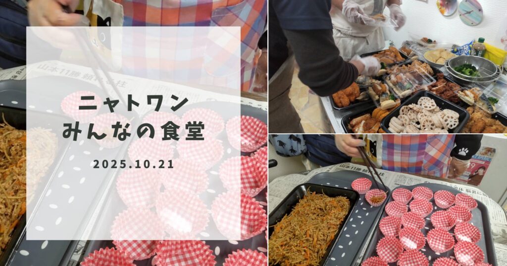 ニャトワンみんなの食堂が10月に開催した、こども食堂など活動の様子を紹介するヨ